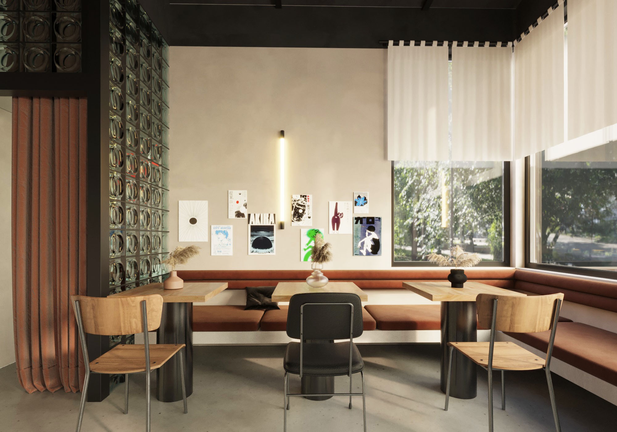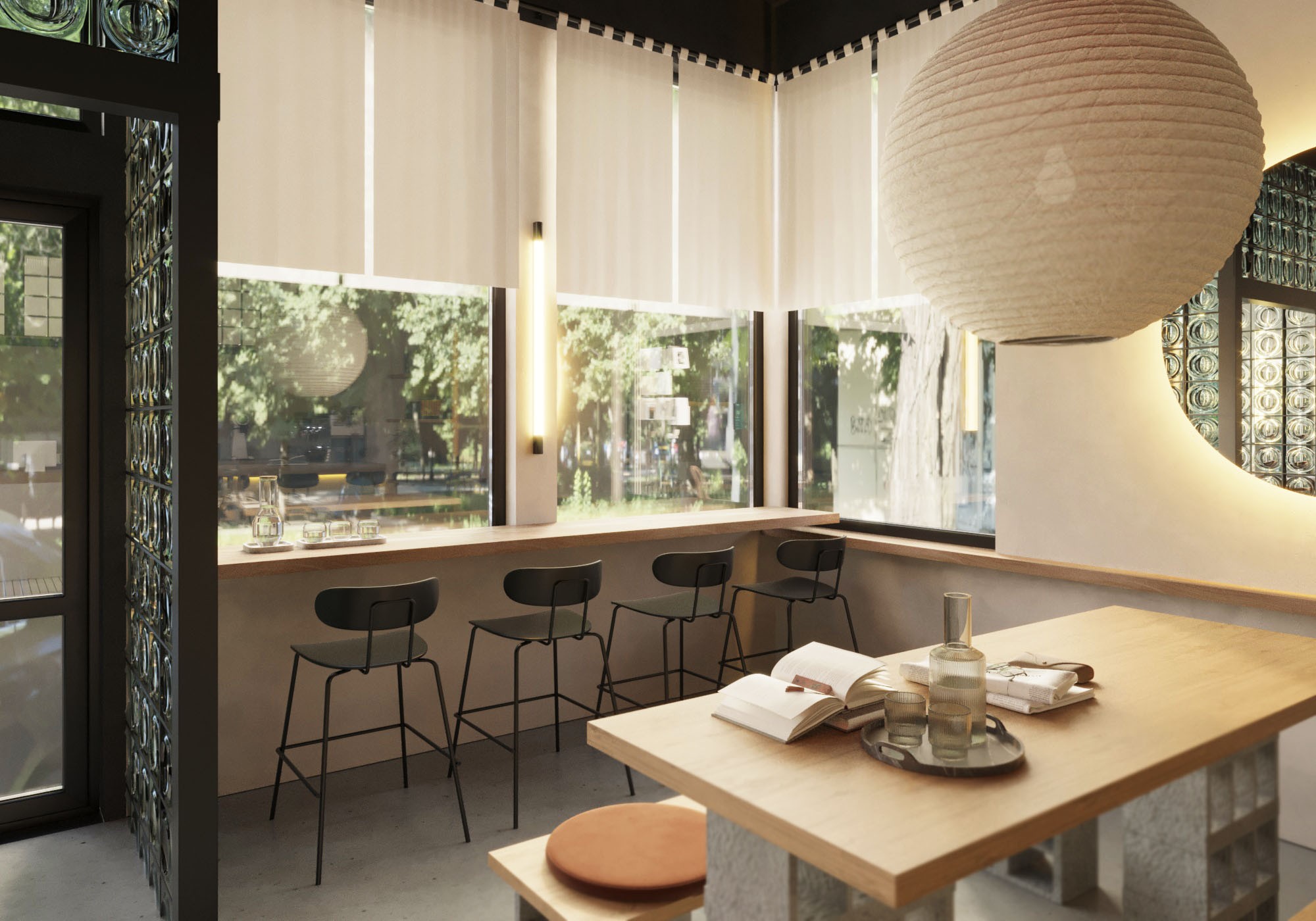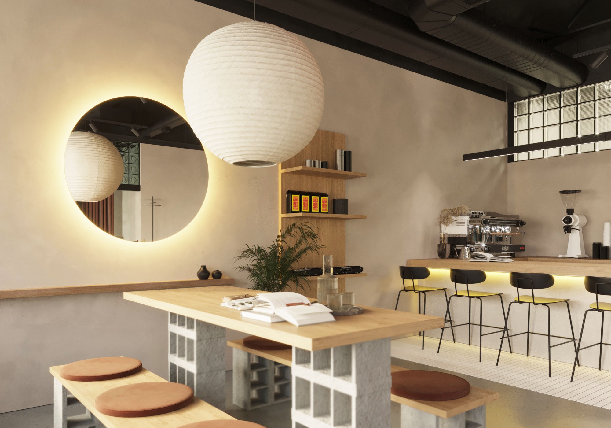 Enjo is a relatively new roastery in the city with a brand positioning as youthful, modern and progressive. The brand identity is made in Japanese style, ENJO means "on fire" in Japanese. Therefore, when designing the first coffee shop of their brand in the city, it was decided to rely on Japanese aesthetics and moderate minimalism.