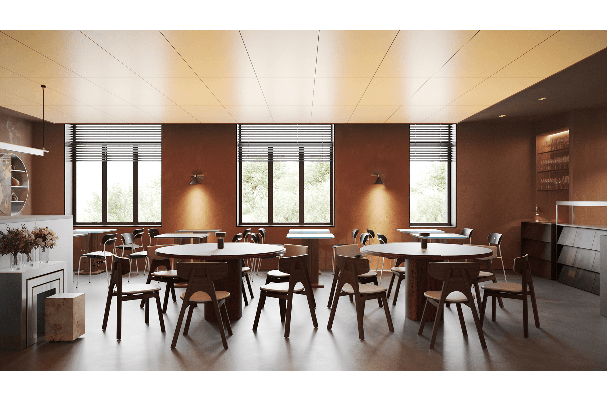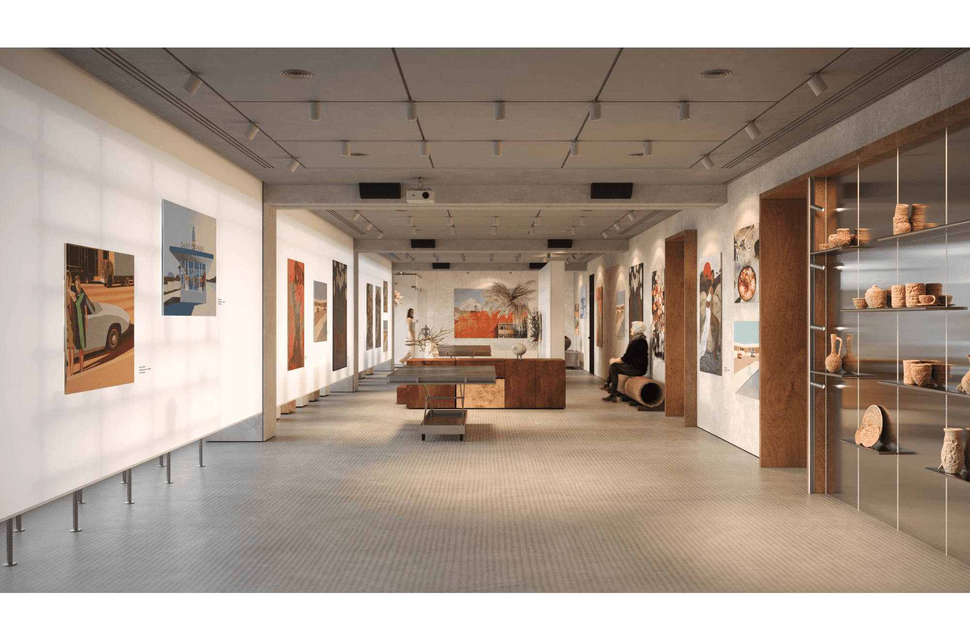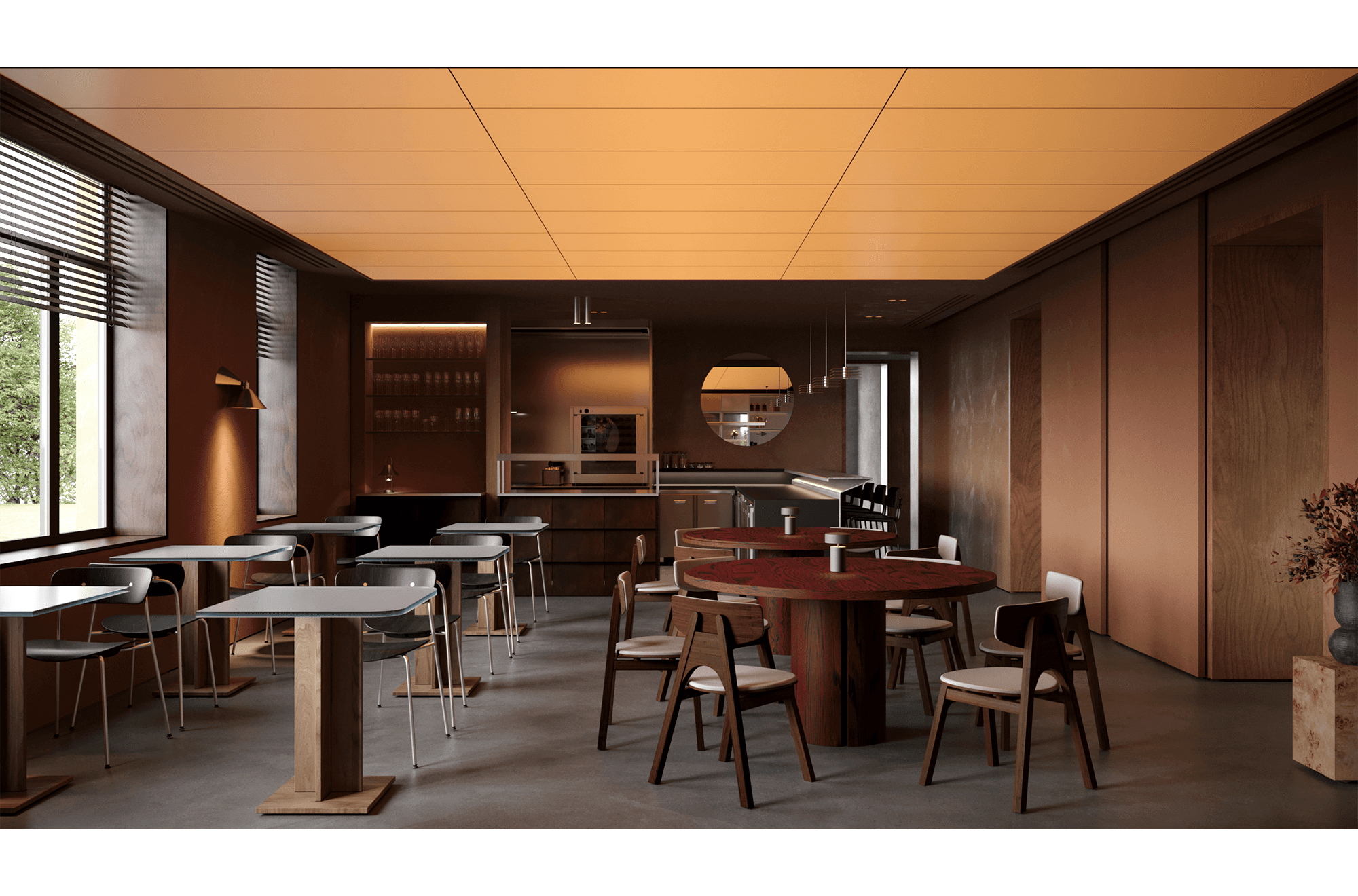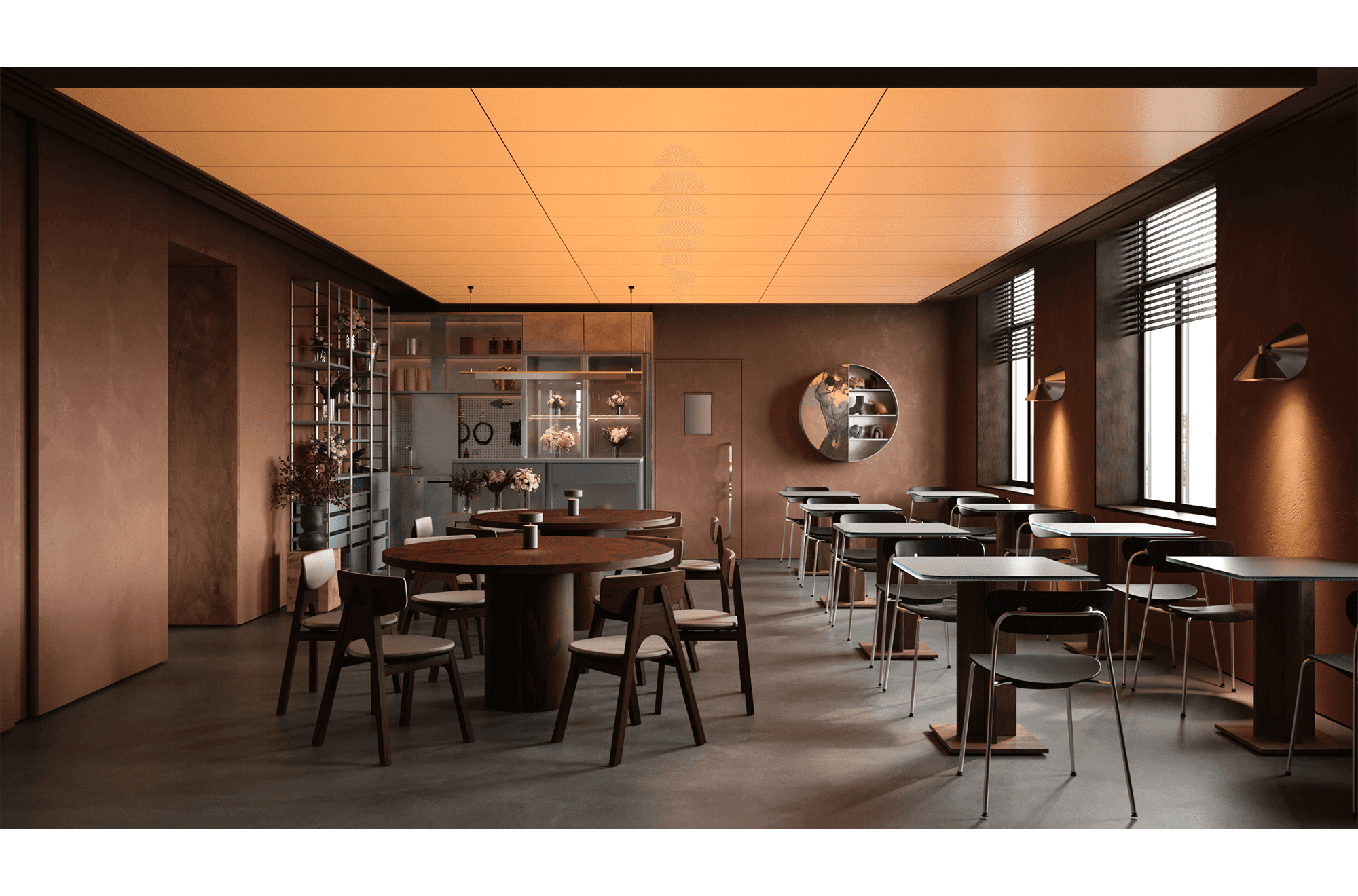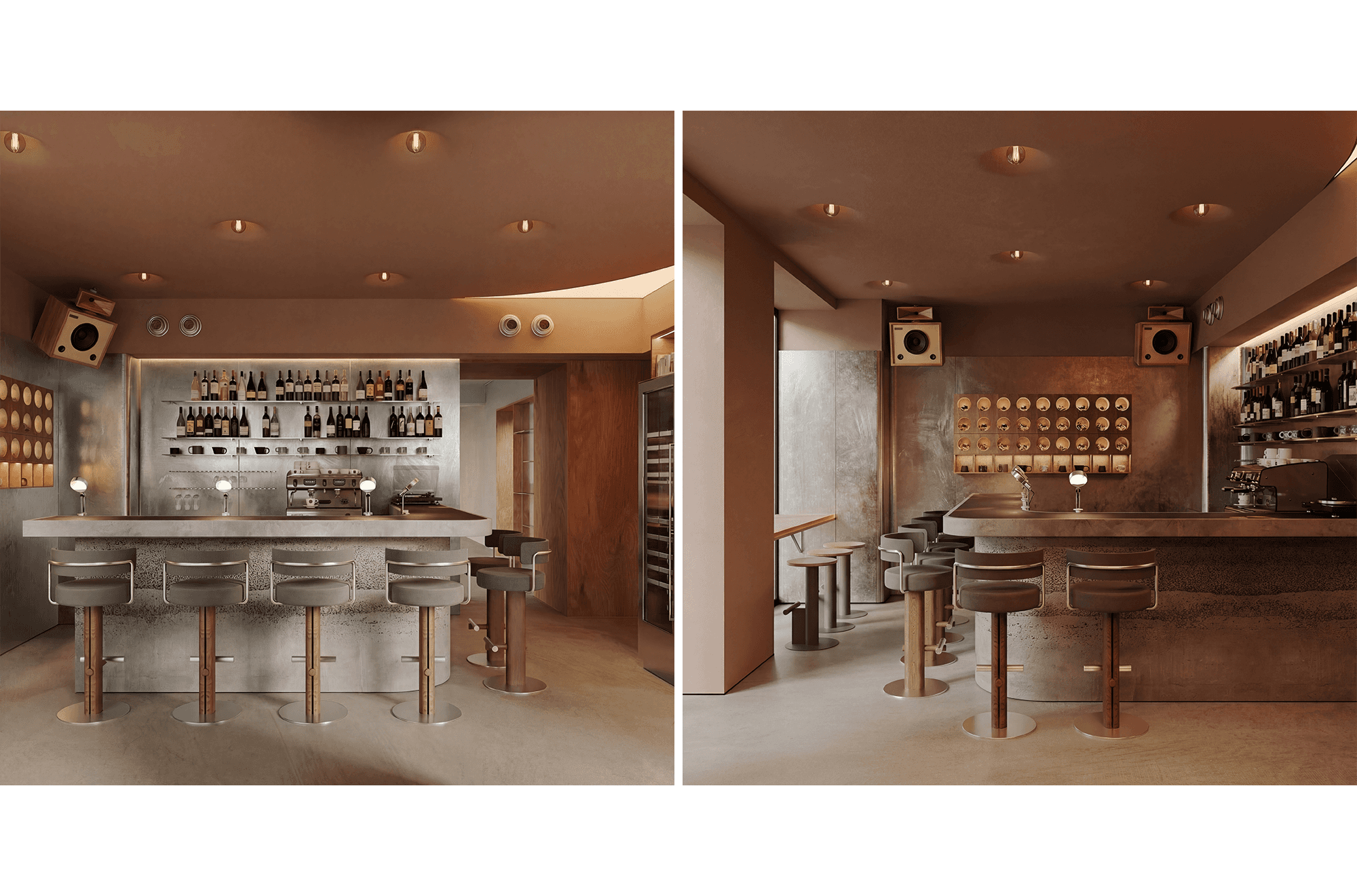 The space is located in a building constructed in the modernism style of the 1960s. We sought to preserve this style in the design, allowing the functional aspect to remain the dominant feature of the interior. We aimed to create a cohesive, fluid space, so there are open passages between the zones. The spaces are divided into an “active” zone - the gallery and bar - and a “quiet” zone with a more subdued atmosphere - the café, library, and vinyl store.